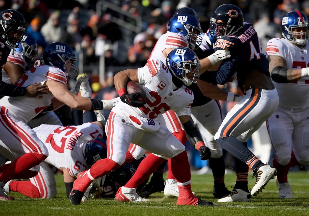 Giants QB Mike Glennon, who was filling in for starter Daniel Jones, who has a neck injury, completed 4 of 11 passes for 24 yards and the two interceptions and was sacked four times.