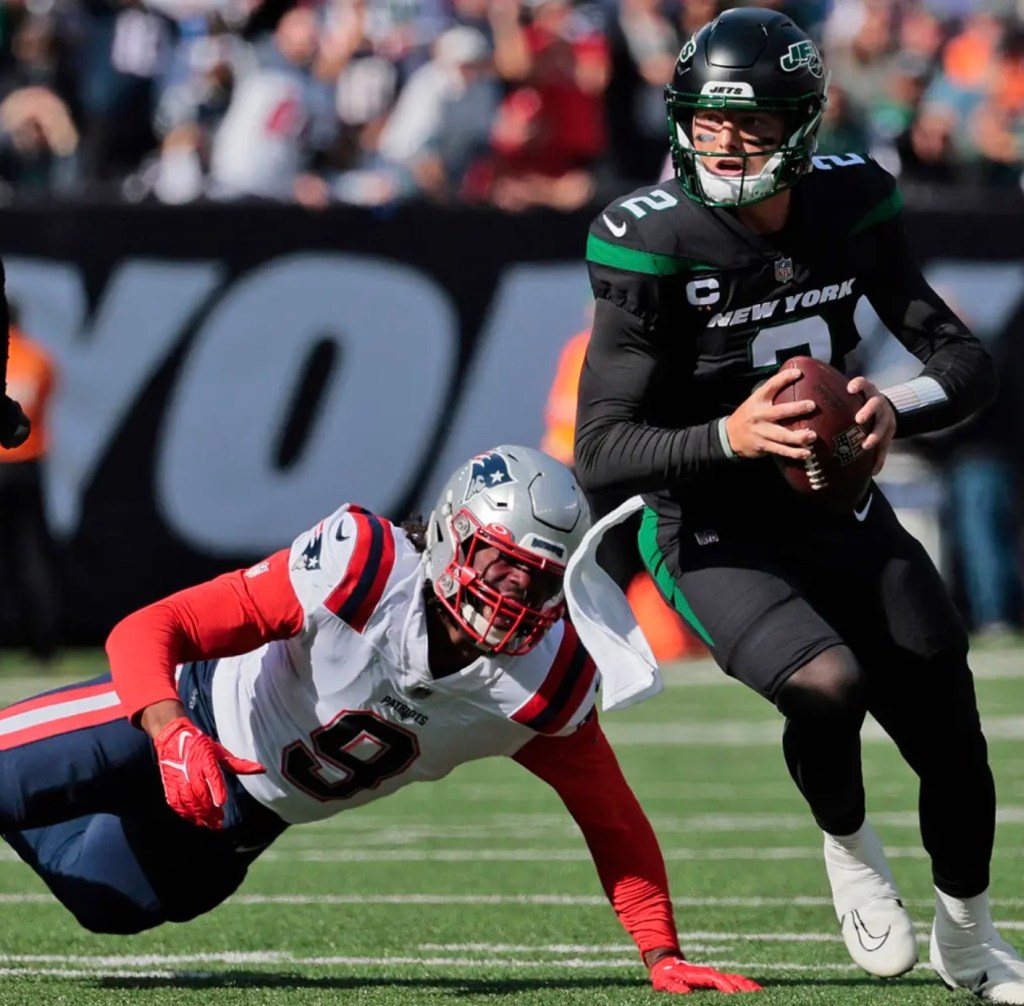 Jets quarterback Zach Wilson threw three interceptions, John Frankin-Myers committed a critical penalty and Gang Green blew a halftime lead in a 22-17 loss to the Patriots. It was New England’s 13th straight win over the Jets and ended a four-game winning streak for the Jets.