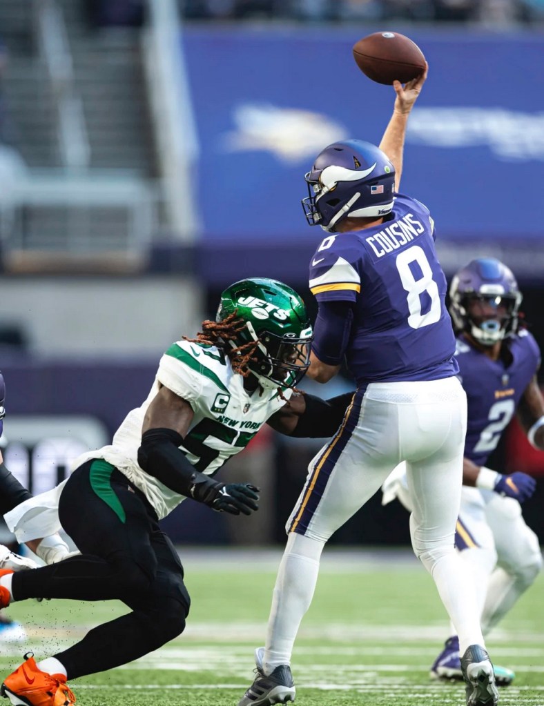 The final chance came when the Vikings punted and the Jets took over at the Minnesota 43 with 1:19 to play. White hit Garrett Wilson for a 18-yard pass that put them at the 19, but the drive stalled there. White threw three straight incompletions and then was picked off at the goal line by Bynum to end the threat.