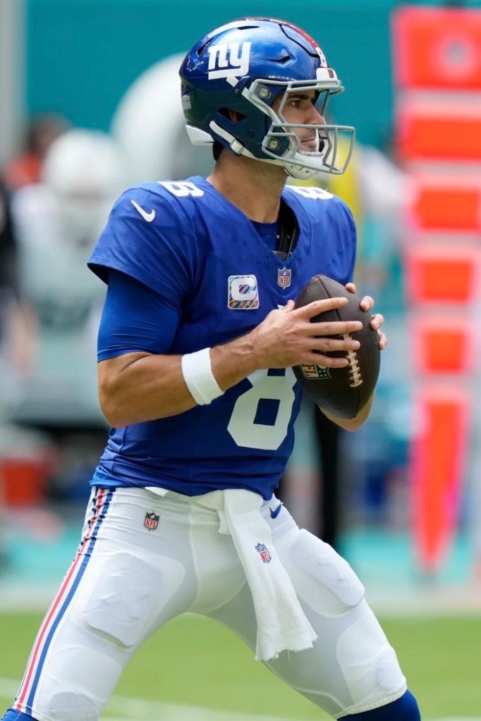 Coach Brian Daboll said Jones was “getting hit quite a bit.” Daboll did add that Jones told him he would be “OK.”